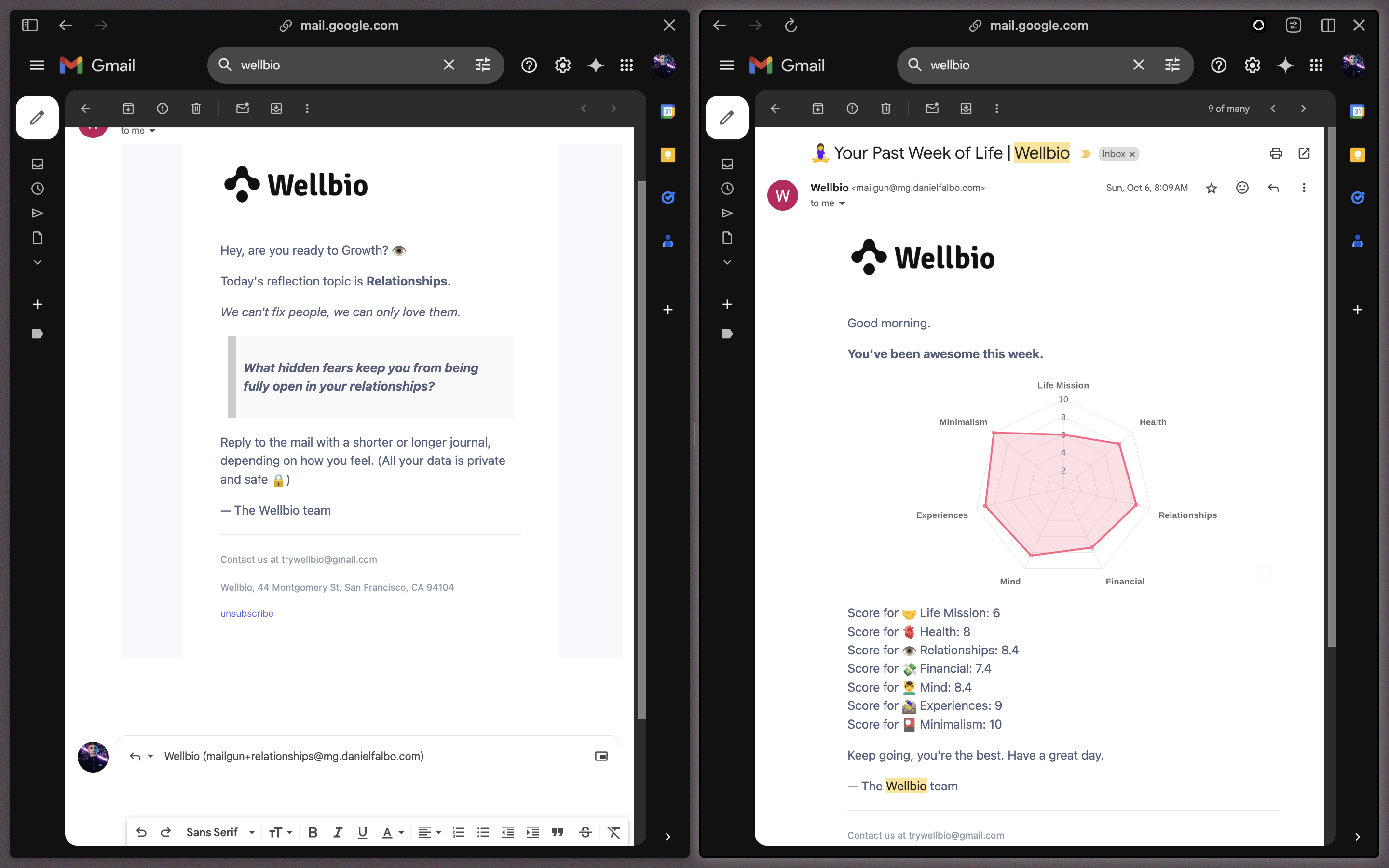 AI-powered journaling via email, designed with my dear friend Gianluca